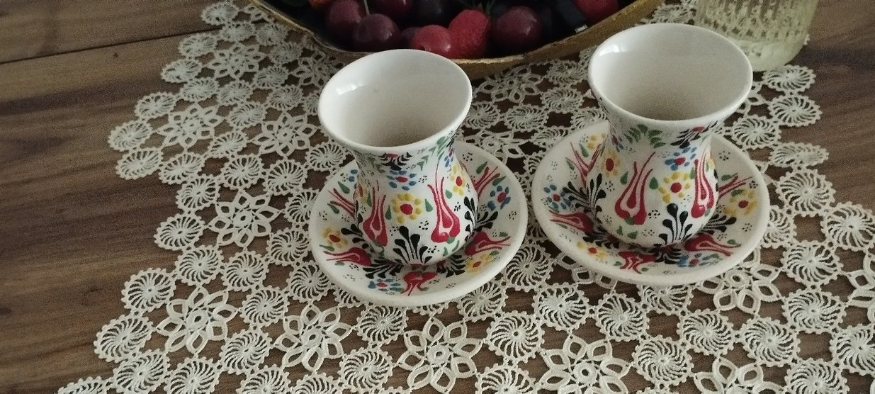 Çini Desenli İk kişilik i Fincan ve Tabak Seti