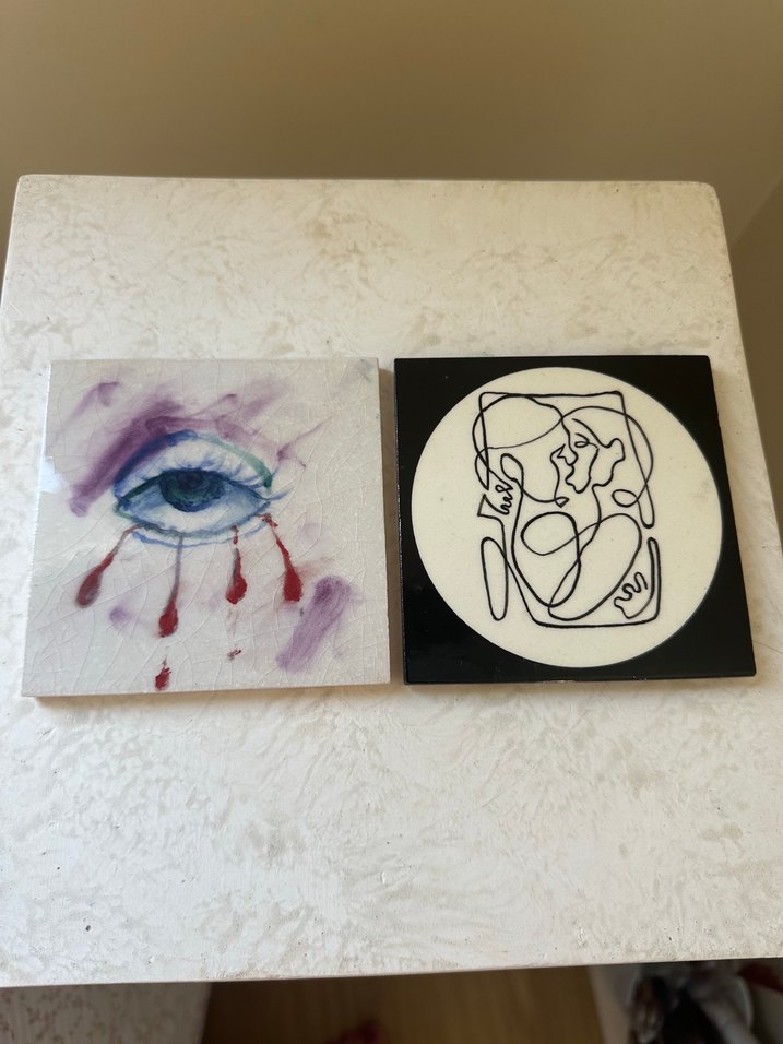 Soyut desenler çalışılmıştır. El emeğidir. Çini malzemeden üretilmiştir. Sırlanıp fırınlanmıştır. Sır çatlakları doğaldır. Adet fiyatı: 120 TL’dir #çini #karo #10x10karo #seramik #çinidesen