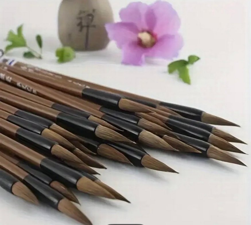 Detaylı resim ve çizim için sivri uçlu, koyu bej renkli hat fırçaları seti. ️çini ve seramik için çok iyi kalitede fırça adet fiyatıdır
