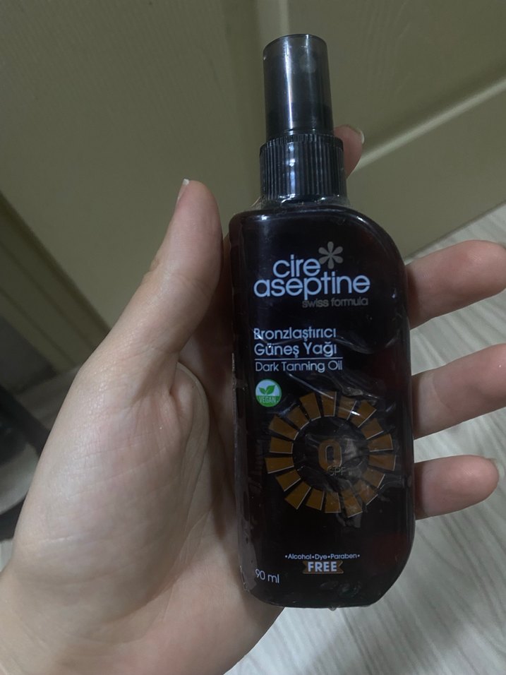 Cire Aseptine 90 ml sprey şişede, alkol, boya ve paraben içermeyen bronzlaştırıcı güneş yağı. Güneşte bronzlaşmayı destekler. ☀️