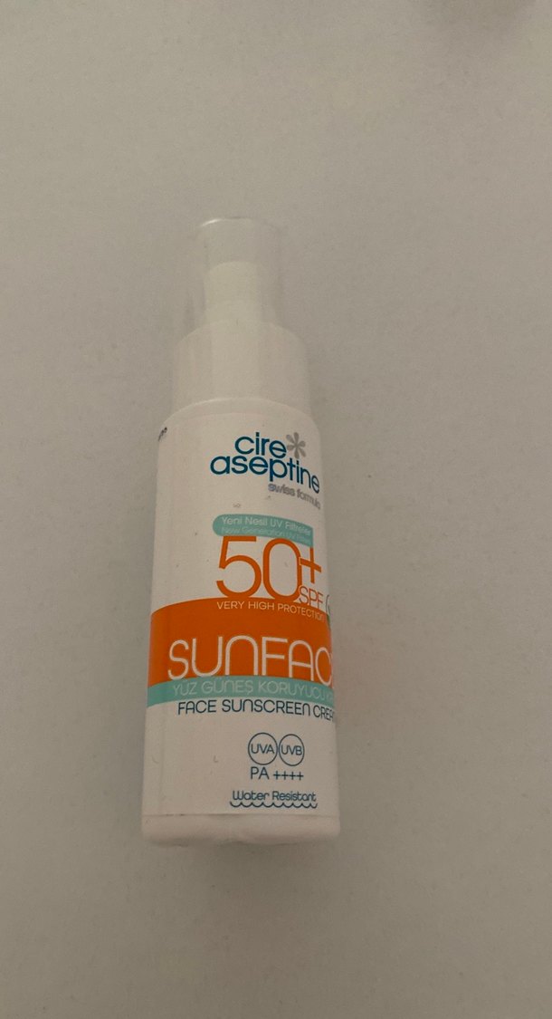 Cire Aseptine yüz güneş kremi SPF 50+ ve PA++++ koruması ile çok yüksek koruma sağlar. Suya dayanıklıdır ve UVA ile UVB ışınlarına karşı korur. ☀️ ben kuru ciltliyim yanlış almışım o yüzden satıyorum sadece 1 defa kullandım denemek için o kadar