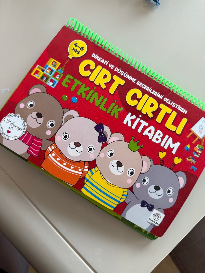 4-6 yaş çocuklar için dikkat ve düşünme becerilerini geliştiren, spiral ciltli renkli etkinlik kitabı. Cırt cırtlı etkinlik kitabı, çok az kullanılmış herhangi bir defosu yoktur. Sıfır ayarında