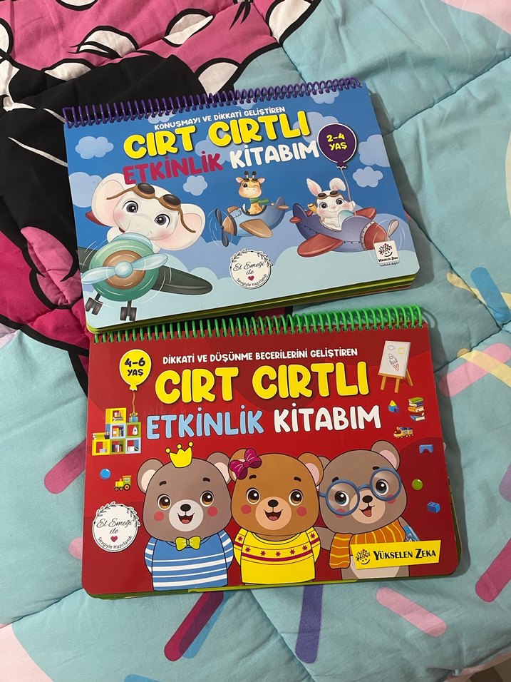 2-4 ve 4-6 yaş çocuklar için konuşma, dikkat ve düşünme becerilerini geliştiren cırt cırtlı etkinlik kitapları.