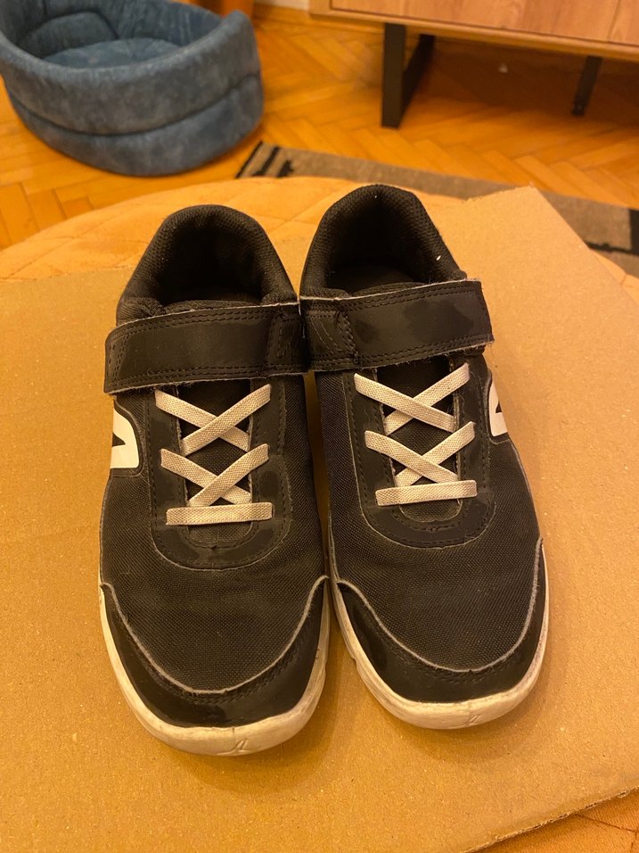 Cırt cırtlı, kauçuk tabanlı siyah erkek kız çocuk spor ayakkabısı. Beyaz detaylar ile sade ve şık bir görünüm sunar.