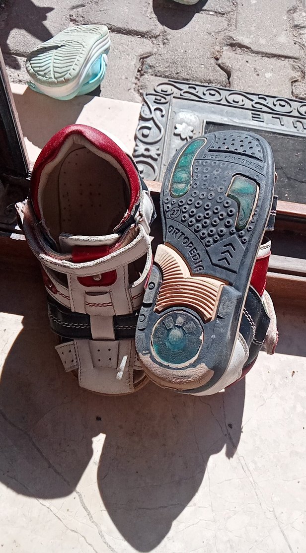 Kırmızı-beyaz baskılı, cırtcırtlı erkek terlik. Dayanıklı kauçuk ve ortopedik taban ile rahatlık sağlar.