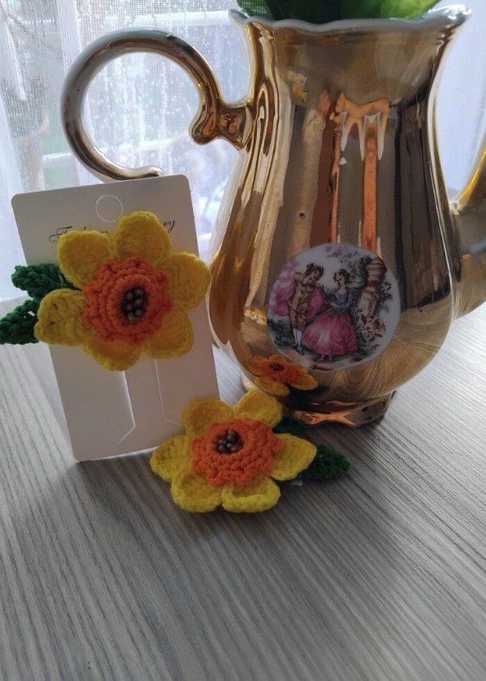 Nergis çiçeği çıtçıt toka kullanılmıştır. İstenilen renk ve model yapılır.