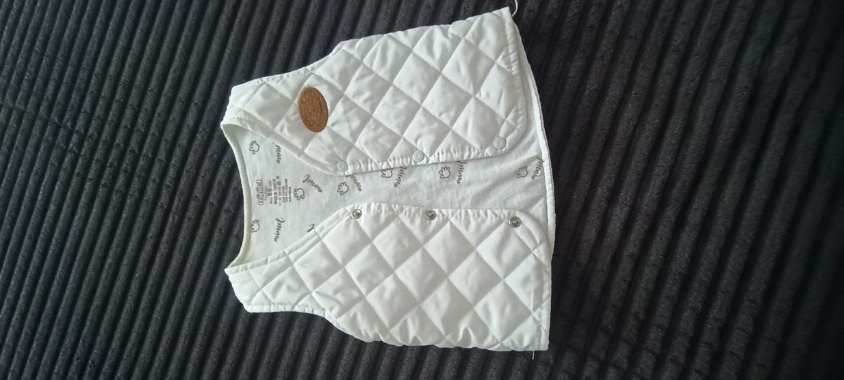 Çıtçıtlı notalı yaka ve nakışlı desenli beyaz erkek çocuk yeleği. İçi pamuklu kumaştan, bohem tarzdadır.İçi sıcacık tutar ve terletmez.1 defa kullanıldı sıfır zaten .