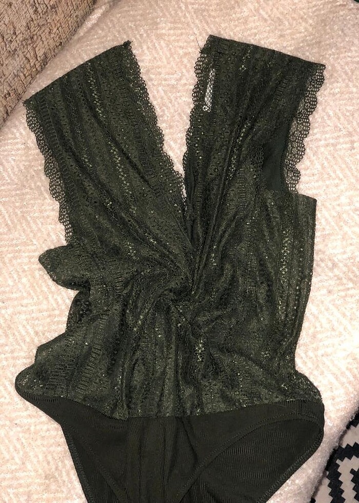 Haki yeşil dantelli, bedeni S-M, astarlı