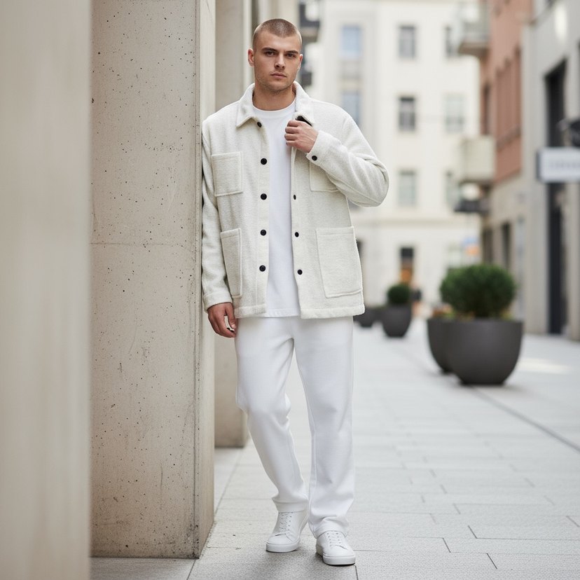 Çıtçıtlı Krem Erkek Ceket