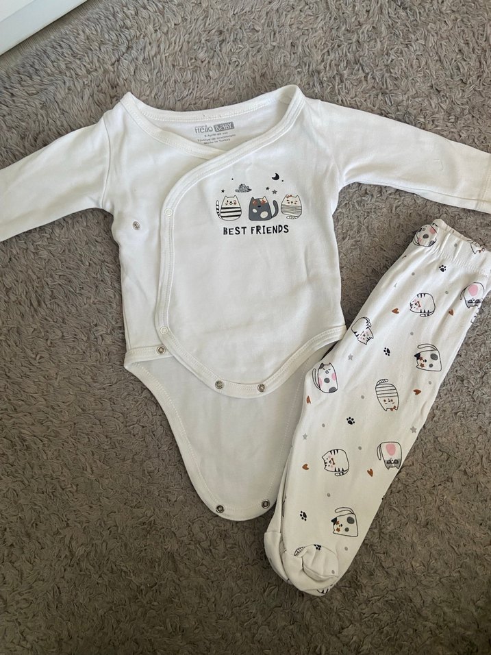 Uzun kollu, yuvarlak yakalı beyaz pamuklu bebek takımı. "BESTFRIENDS" yazılı baskılı ve örme dokulu rahat bir modeldir.