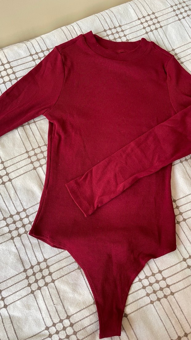 Bordo renginde, yüksek yakalı ve uzun kollu, yumuşak sentetik kumaştan yapılmış, vücuda oturan kadın bluz. Günlük kullanıma uygun, sade ve rahat tarzda, normal boyda. 200 ve 200 Tl altı ürünlere indirim istemeyiniz