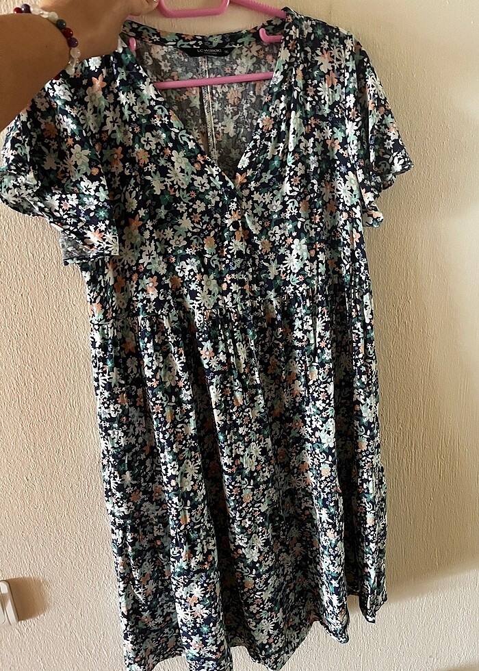 Volan kollu dize kadardır önü çok açılmaz 36 beden ama l bedene kadar giyilebilir yazlık tiril tiril elbise hiçbir lekesi deformesi yok