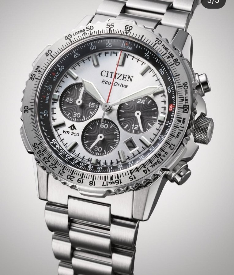 Citizen EcoDrive erkek saati, gri ve beyaz kadranlı, kronograf alt kadranlar ve paslanmaz çelik kayışlıdır. 200 metre su geçirmezlik ve güneş enerjili EcoDrive teknolojisi bulunur. ⌚