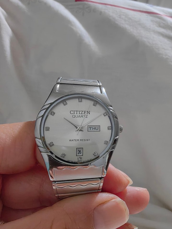 Citizen marka, beyaz kadranlı, quartz mekanizmalı erkek kol saati. Gün ve tarih göstergesi ile suya dayanıklıdır. Gri metal kayışlı klasik ve çağdaş tasarım. ⌚