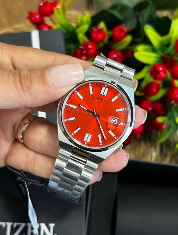 Citizen Tsuyosa serisinin dikkat çeken kırmızı kadranlı modeli. Otomatik mekanizma, çelik kasa ve bilezik ile günlük kullanımda şık ve güçlü bir duruş sunar. Kırmızı kadranın ışıkta verdiği ton geçişleri saati farklı ve özel kılar. Hem klasik hem spor kombinlere rahatça uyum sağlar. Hediyelik saat kutusu ile gönderilecektir. Detaylar ve hızlı işlem için mesaj atabilirsiniz.