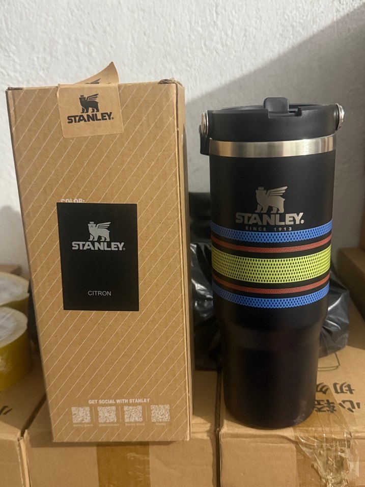 Citron termos şişe, dayanıklı siyah gövde ve renkli çizgilerle, içeceklerinizi sıcak veya soğuk tutmak için uygundur.
