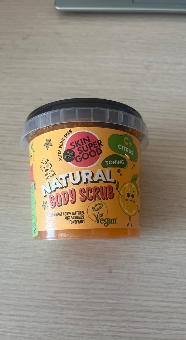 Citrus kokulu, cildi tonikleyen doğal vücut peelingi. Vegan ve doğal içeriklerle hazırlanmıştır.