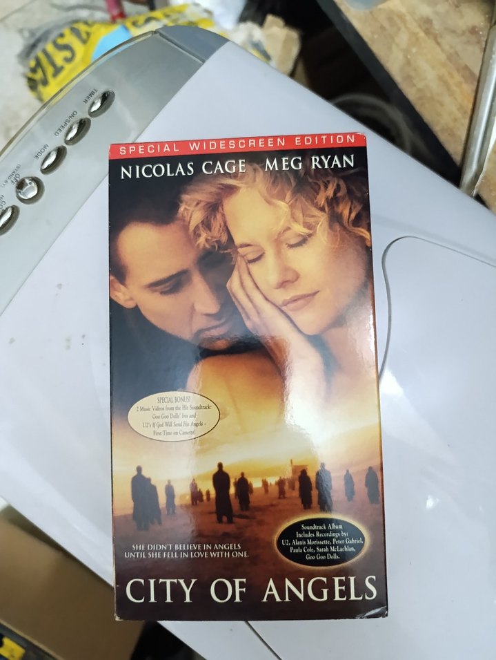 Nicolas Cage ve Meg Ryan'ın yer aldığı City of Angels filminin özel geniş ekran VHS versiyonu. Romantik drama türünde.