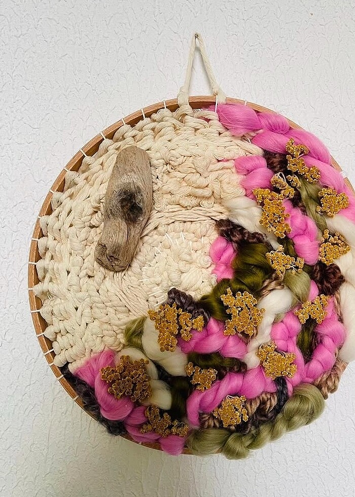 Civanperçemi Yün Keçe Makrome Yuvarlak Dekoratif Salon Duvar Süs