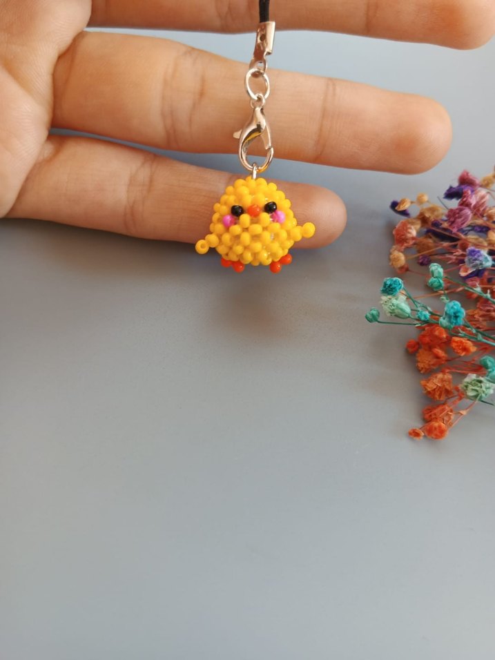 el yapımı sevimli civciv telefon charmı . farklı renklerde sipariş verebilirsiniz . #kumboncuk #elemeği #handmade #elişi #boncuk #kawaii #hediye #hediyelik