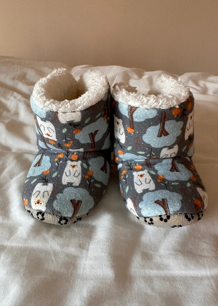 Hiç giyilmemiştir. Boyu 12 cm’dir yani 19 numara gibidir. 9-12 aya uygun olduğunu düşünüyorum.