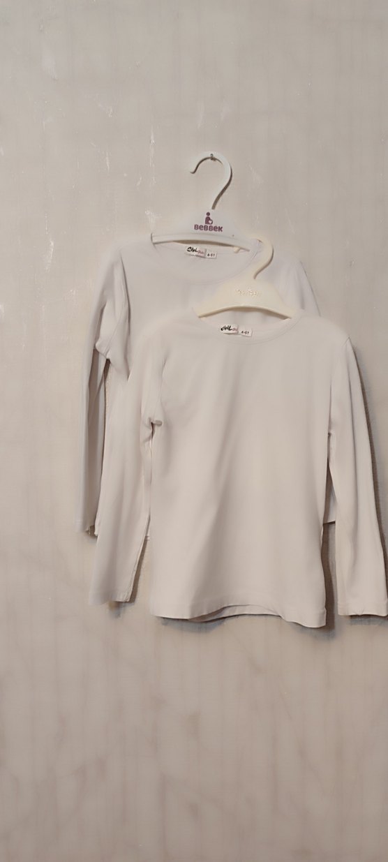 Beyaz renkte, uzun kollu tşört Yumuşak kumaştan üretilmiştir, rahat kullanım sağlar. 2 si birlikte. temiz