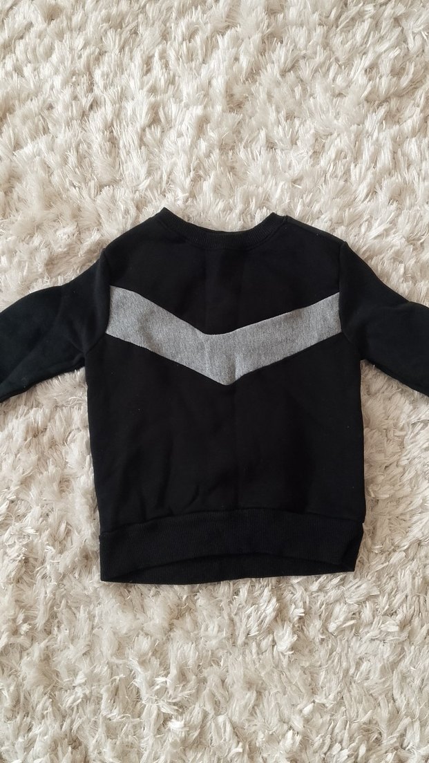 Bol kesim, uzun kollu ve yuvarlak yakalı erkek çocuk sweatshirtü, yumuşak polar detay ve gri chevron deseni ile. Günlük sokak stili için uygundur.