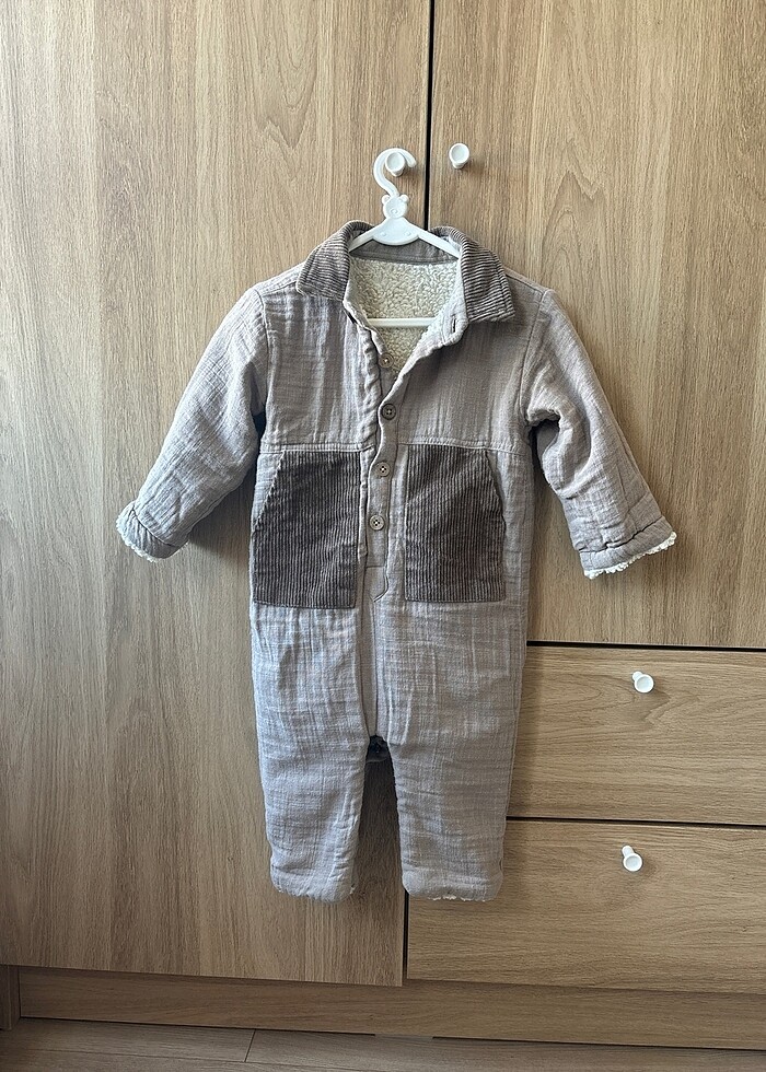 İhtiyaç fazlası oldugu için satılık,, aldıgımızda yıkadık bebeğim 1 kere giydi ürün göründüğü gibi herhangi bir sorunu yok. Alt bacak kısmı cıtcıtlı göğüs kısmı düğmeli içi yün