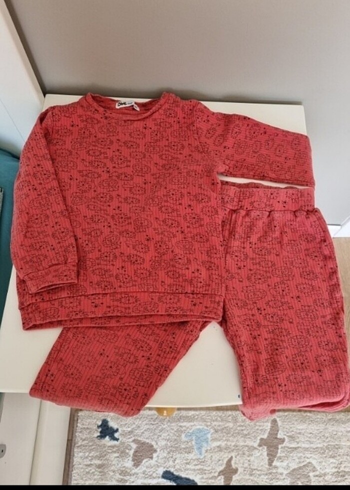 Civil 5 yaş fitilli penye pijama takımı, içi pamuklu değil, üzerinde aslan desenleri var baskıları solmamış