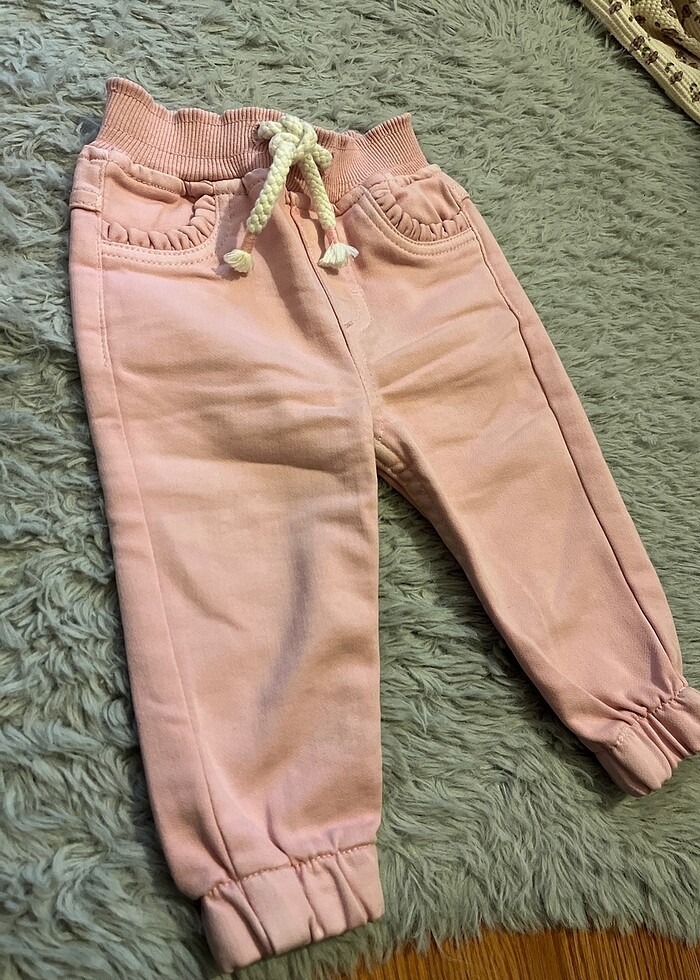 Beli ve ayakları lastikli pembe pantolon. Çok rahat esnek.Az kullanıldı.