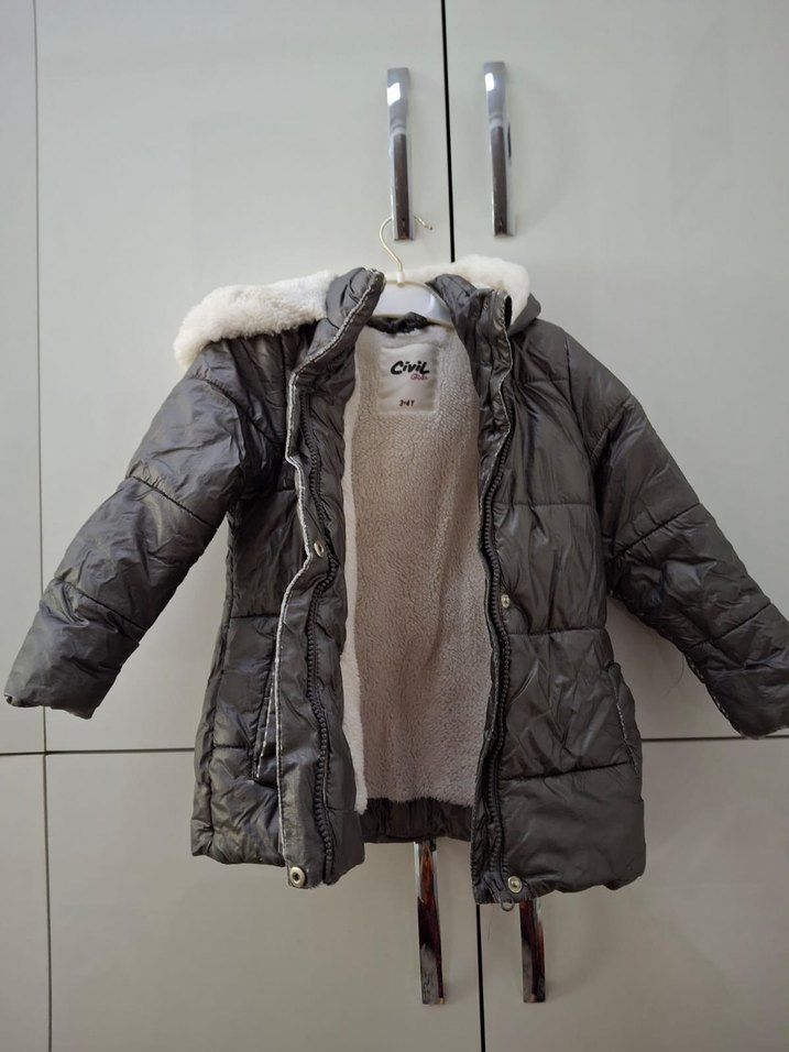 Kız çocukları için gri kapitone mont, kürklü kapüşon ve yumuşak, sıcak fleece astar içerir. Modern sokak stili için uygundur. ❄️. yırtık sökük deformasyon yoktur fermuarı sağlamdır civil kalitesini bilen bilir dolabımdan orijinal spor ayakkabılar çocuk giyim tesettür giyim ve abiye modelleri mevcuttur