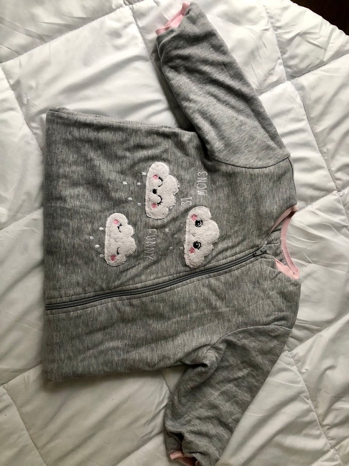 Yumuşak ve sıcak gri polar kız çocuk uyku tulumu, uzun kollu, yuvarlak yaka ve ön fermuarlı. Sevimli nakışlı bulut desenleriyle süslenmiştir. ☁️ ürün sıfırdan farksız yeni gibi, tertemiz. Özenle kargolanır tarafınıza gönderimi sağlanır.. güvenle tercih edebilirsiniz..