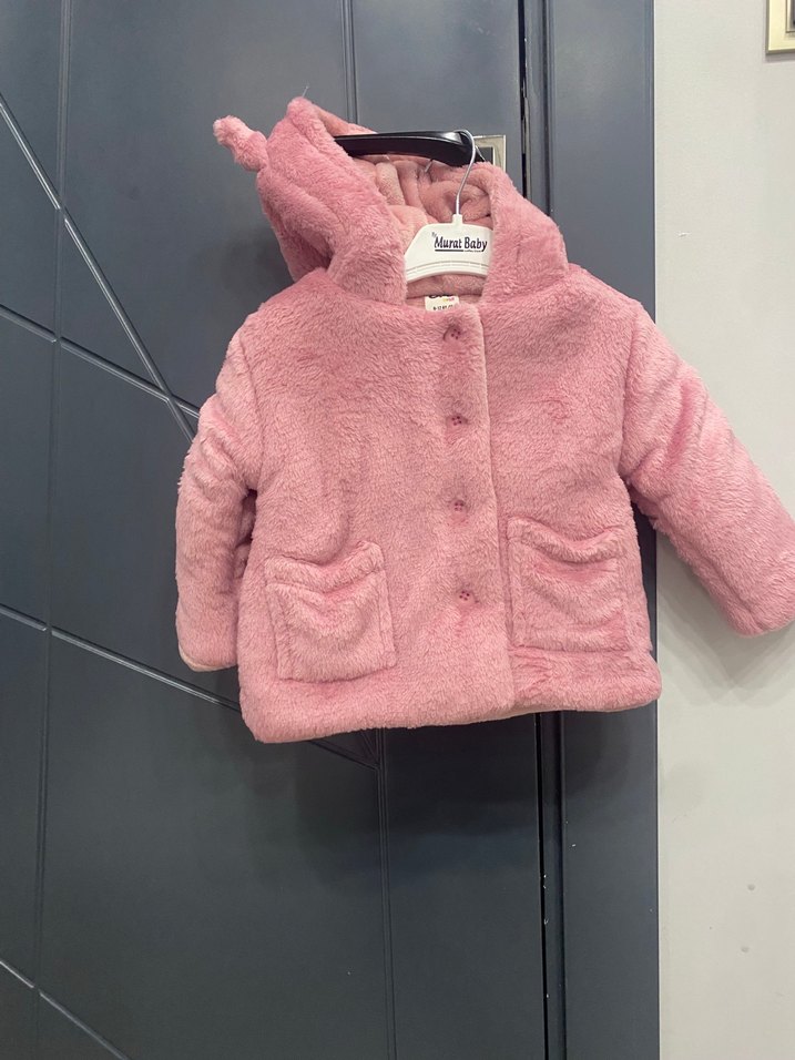 Kız çocukları için pembe, yumuşak ve sıcak kumaştan, kürk detaylı, yakası kesik yaka mont. Ön ceplidir, sade ve basic tasarıma sahiptir.