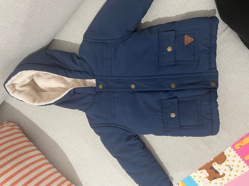 Etiketi yok ama 1 kez dahi giyilmedi. 9-12 ay, tam bedendir. İçi peluş, sıcak tutacak bir kumaş. Hem çıtçıt hem fermuarı var. #mont #bebek #lacivert #civi