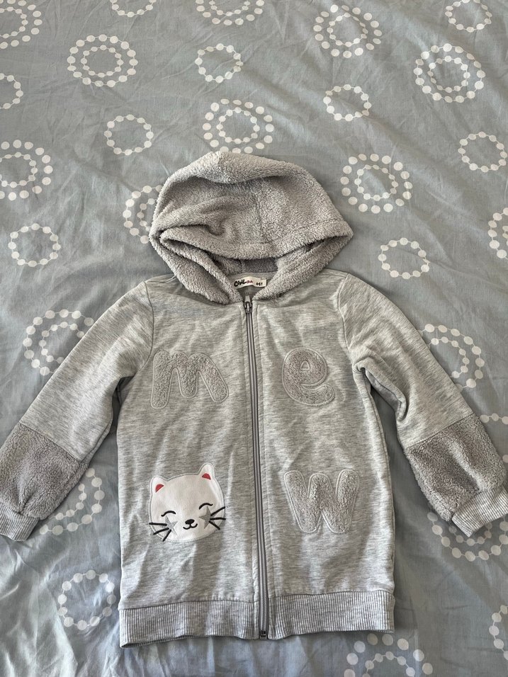 Civil marka 4-5 yaş Kız çocukları için gri, kapüşonlu, yumuşak kürk detaylı ve nakışlı sweatshirt. Uzun kollu, dar kesim, rahat ve sıcak polar kumaştan üretilmiştir.