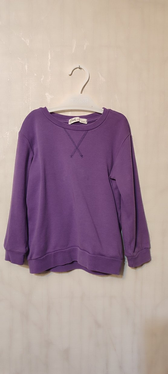 Civil Mor renkli, yuvarlak yaka ve uzun kollu çocuk sweatshirt. unisex.Rahat kesimi ve yumuşak, sıcak kumaşıyla sade ve temel bir tarz sunar. 2 kez giyildi. tertemiz. 2 adet