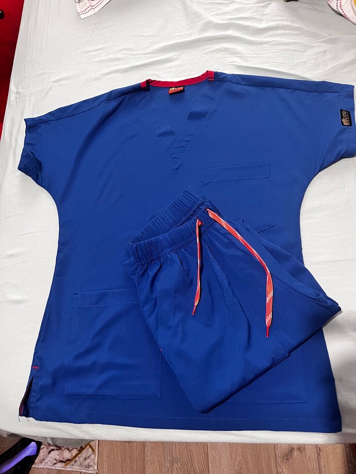 Çizgi Mavi Kısa Kollu V Yaka üniforma