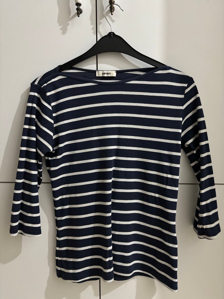 Çizgili fakir kol bady. küçük tiftiklenmeleri var ama düzeltilebilir. Klasik bir koton bady si. Lacivert beyaz çizgili günlük kullanıma uygun.