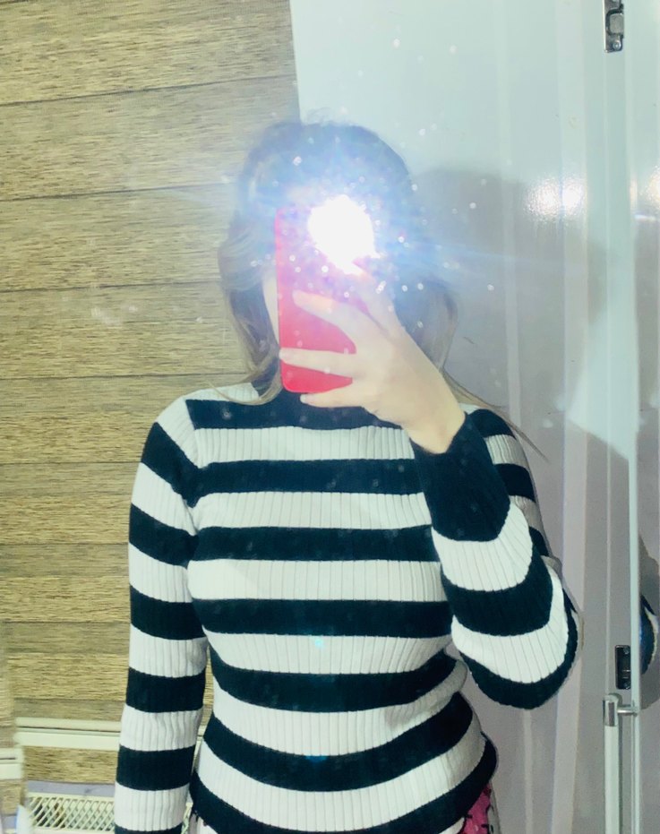 Fitted kesim, balıkçı yaka ve uzun kollu kadın kazak. Örgü kumaştan, çizgili ve çok renkli, rock punk havasında avant-garde tarzda. Günlük kullanım için uygun.
