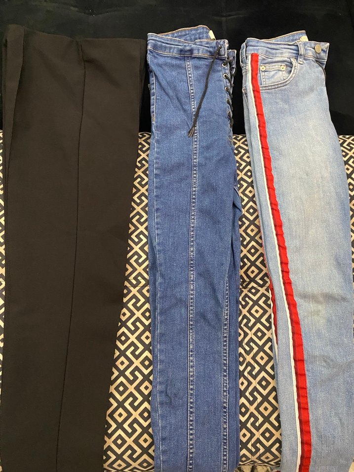 Çizgili yan detaylara ve kemerli bele sahip, günlük kullanıma uygun dar kesim kadın kot pantolonlar, gri ve çok renkli seçeneklerde. Tek li fiyat sorunuz