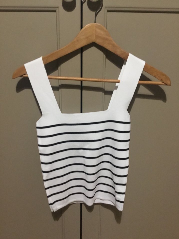 Çizgili Beyaz Askılı Triko Kadın Atlet