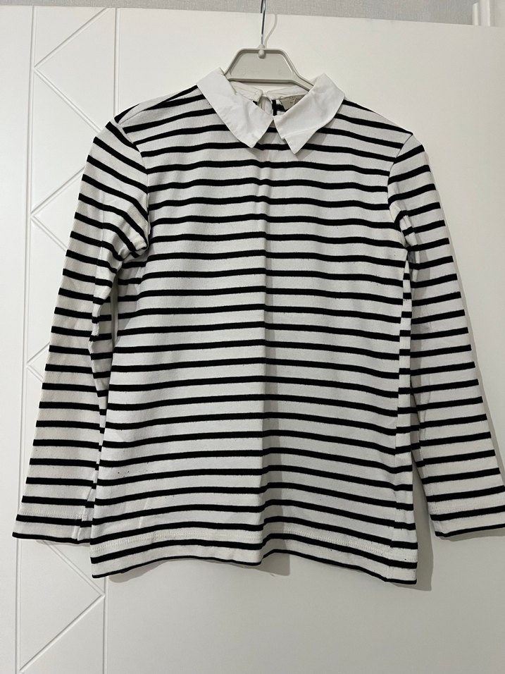 Uzun kollu, yakalı ve düğmeli ön kısmı olan beyaz ve gri çizgili pamuklu gömlek. Regular fit kesim, günlük kullanıma uygundur.