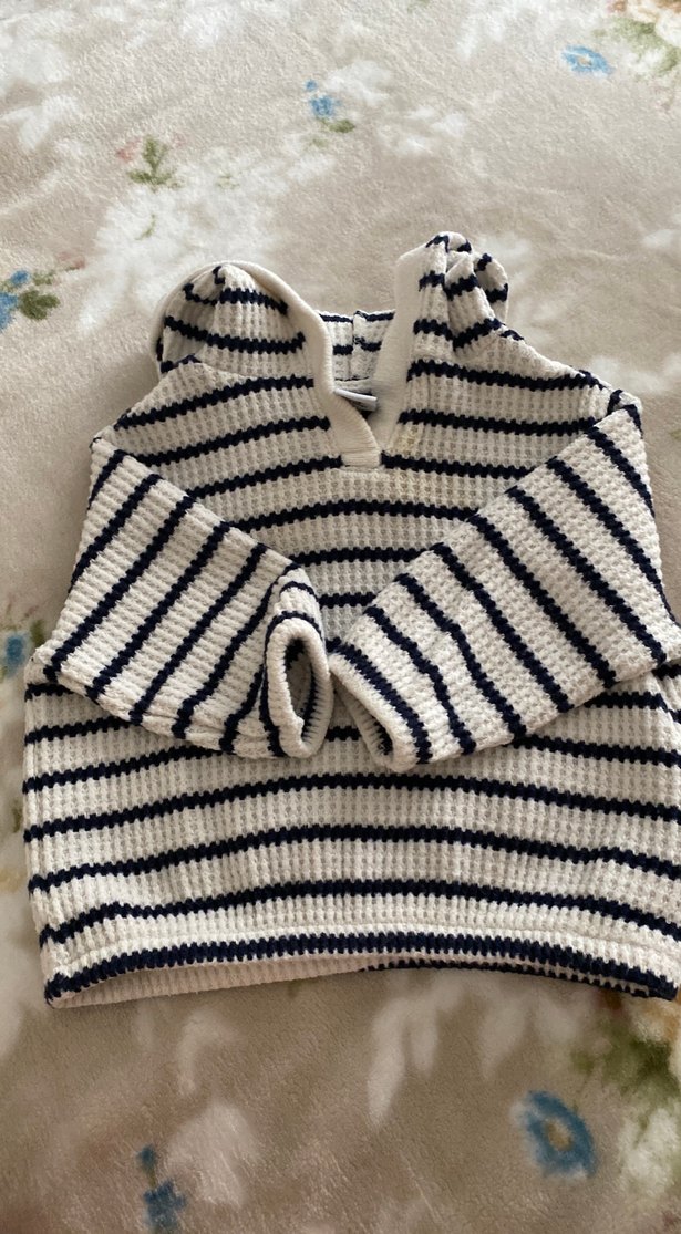 Çizgili Beyaz Gri Örgü bebek Kazak