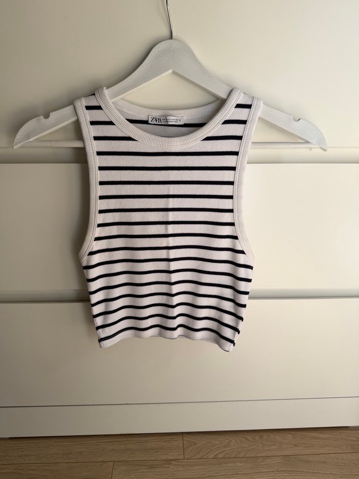 Çizgili Beyaz Kolsuz Crop Top