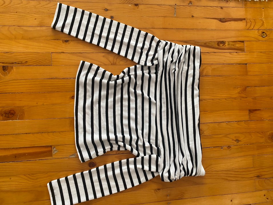 Çizgili Beyaz siyah Uzun Kollu Bluz