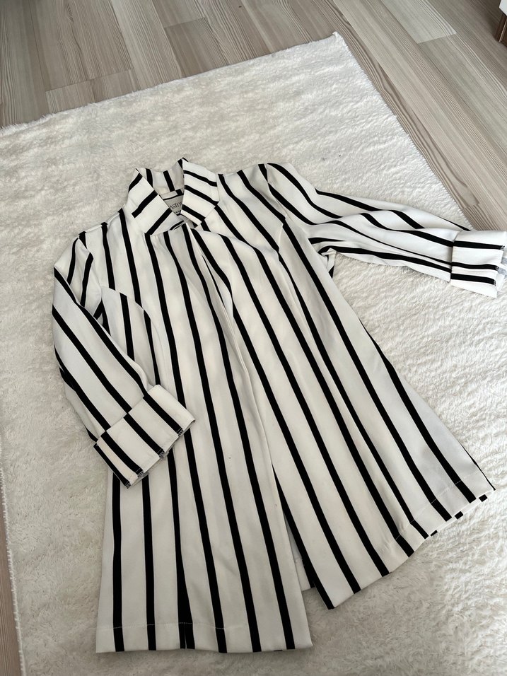 Çizgili Beyaz Uzun Hamile Ceketi