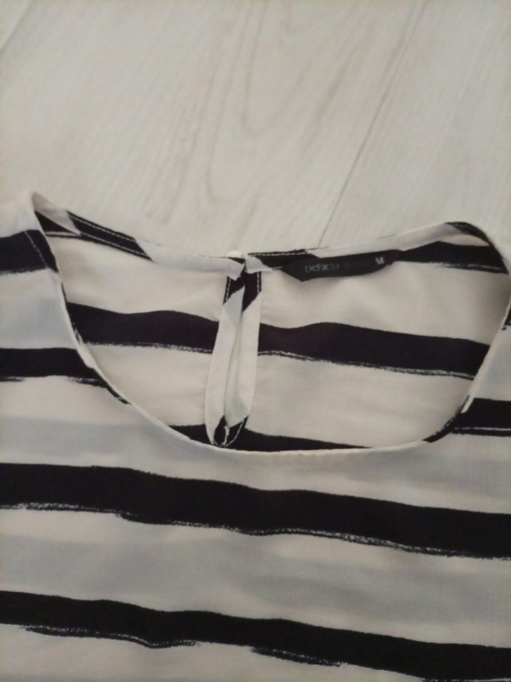 beyaz çizgili, bluzu. Yumuşak kalın şifon kumaştan, günlük kullanıma uygun.