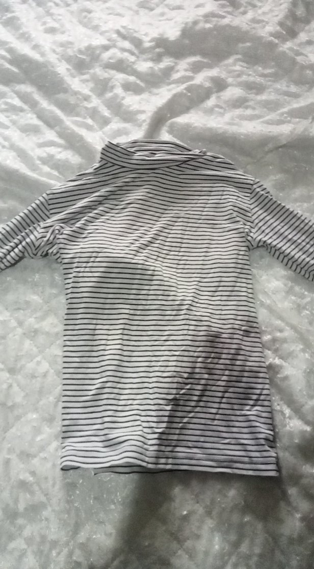 Boğazlı ve uzun kollu, çizgili desenli ve pile detaylı, yumuşak sentetik kumaştan yapılmış, vücuda oturan hamile tişörtü. Günlük rahat kullanım için uygundur.
