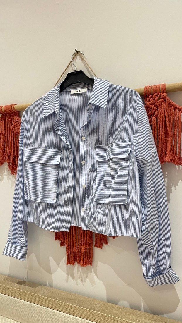 Çizgili, Cep Detaylı Kadın crop Gömlek sadece 1 kere giyebildim