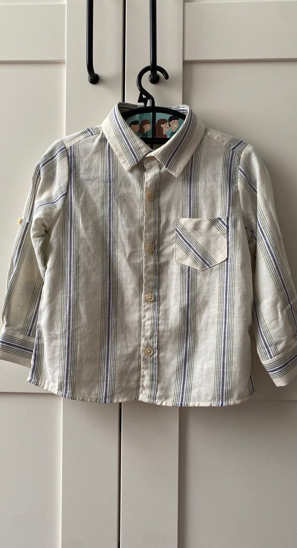 çizgili, keten kumaştan, düğmeli uzun kollu, regular fit gömlek. Sokak stili için uygun. Hem spor hem şık kombin parçası unisex model, Etiketi yok ama sıfır üründür.